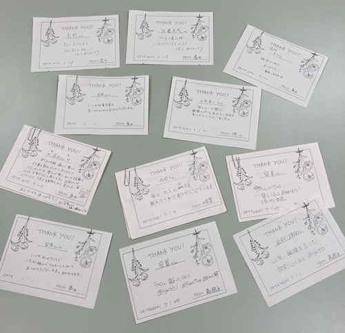 ありがとうと感じたことをサンクスカードに記載し、投票箱に入れてもらう。毎月集計し、ありがとうポイントを多く獲得した人を毎月1名表彰し、EPKのお客様の商品を贈呈する。