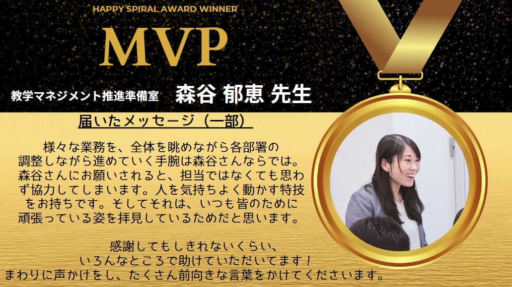表彰者は、教学マネジメント推進準備室の森谷先生です!