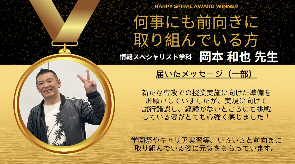 受賞者は、情報スペシャリスト学科の岡本先生です!