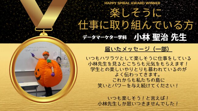 受賞者は、データマーケター学科の小林先生です!