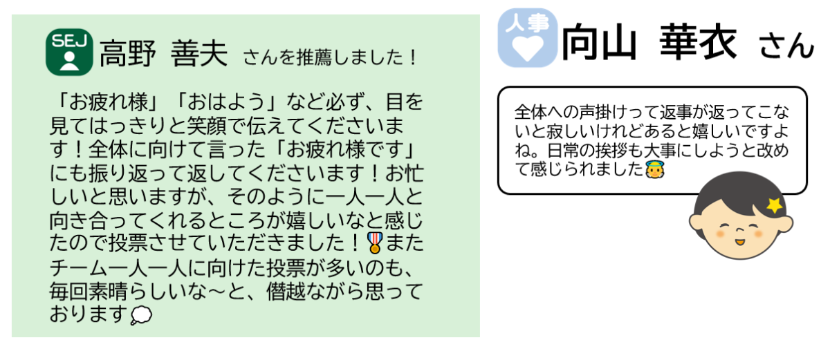 また、相手を見て自分も頑張ろうと感じて表彰する傾向もありました。