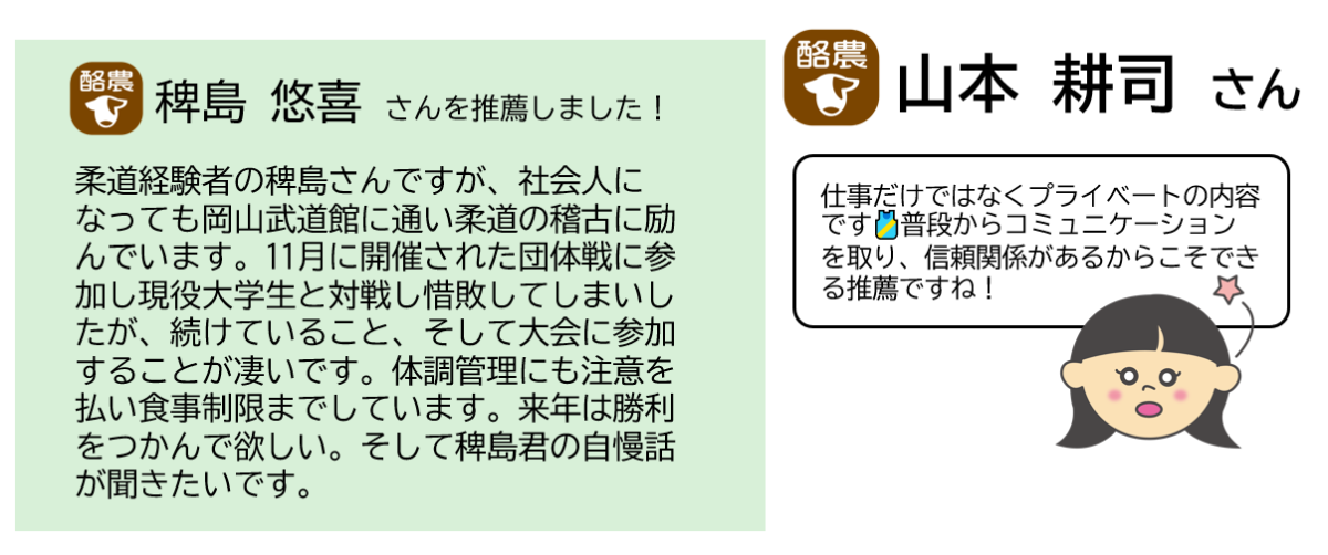 以上から、推薦された人だけではなく、推薦した人も大事に見てきました。