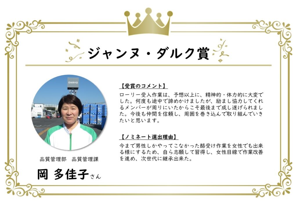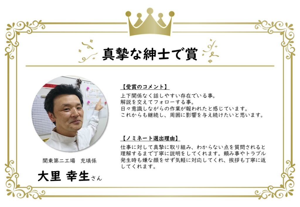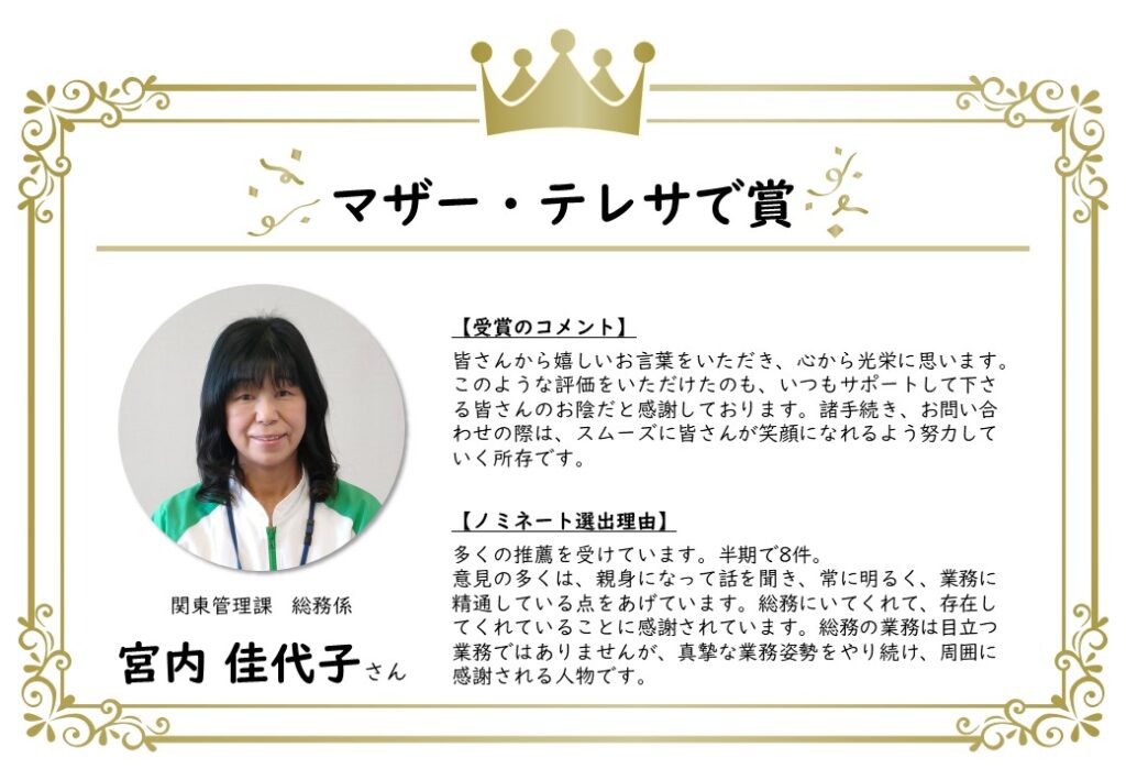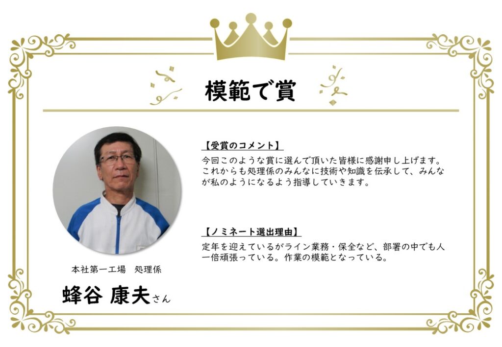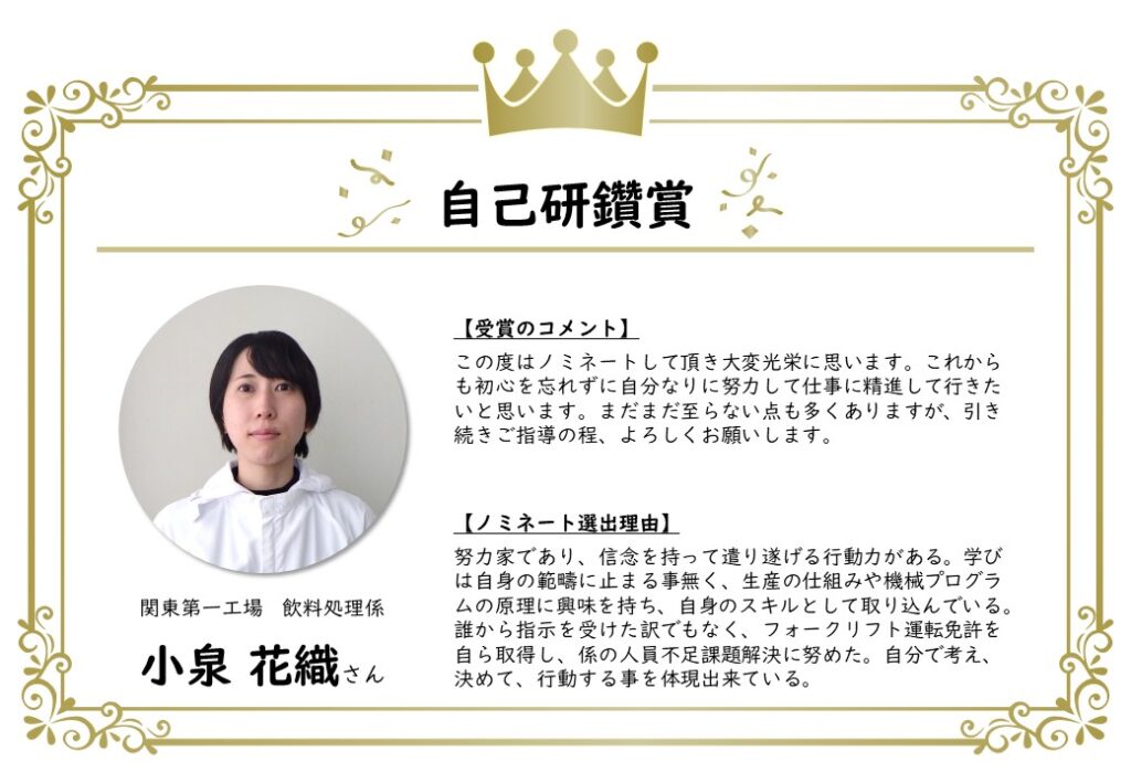 このたび、上半期のノミネート者が決定し、表彰されました。