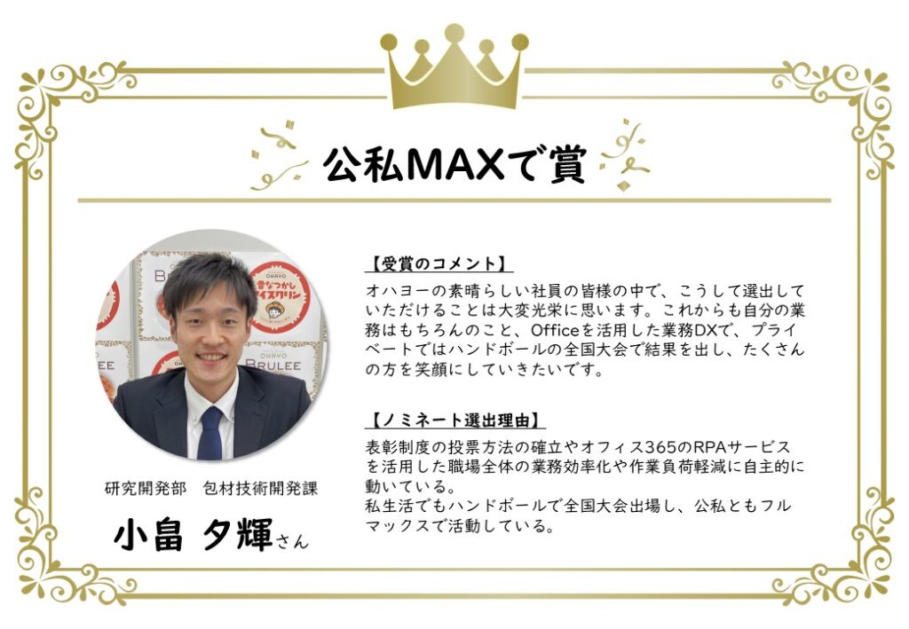 今年4月からスタートした「オハヨー表彰制度」。