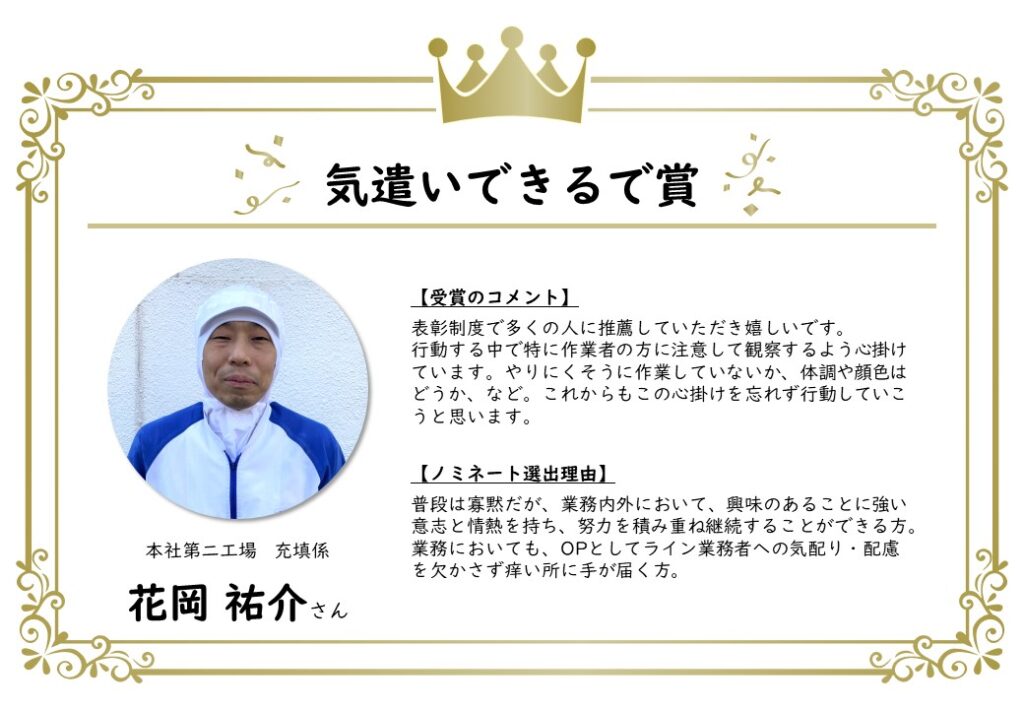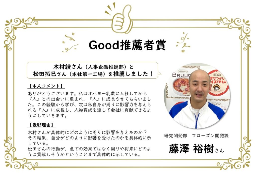 オハヨー乳業においても、表彰制度を通じて、互いを認め合い、応援し合える組織を作っていきたいと考えています。