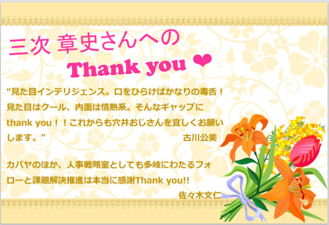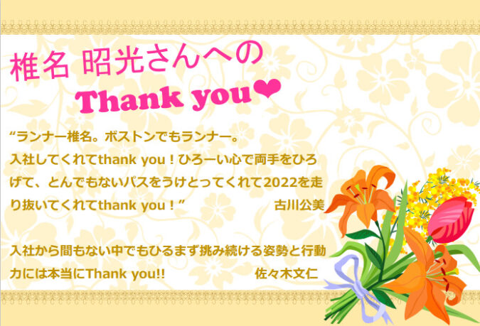 ・『私の約束』に照らして、今年この人にこれだけは伝えておきたいことを賞にしたspecial thank you‼