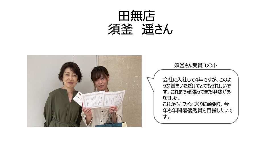 年間最優秀賞は上期・下期と継続して受賞した3名としました!!!