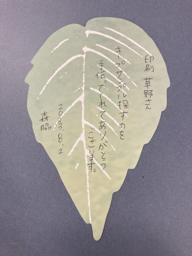 ある程度、ありがとうカード葉っぱバージョンがたまり次第、これまでの物と貼り換えを行い掲示しようと思っています。ありがとうカードを掲示し出してから社内でも足を止めて読む社員の方も多く見受けられますが、外部のお客様が来社された際も会社のアピールに一役買っておりこれまで活動してきた委員会としても嬉しい限りであります。